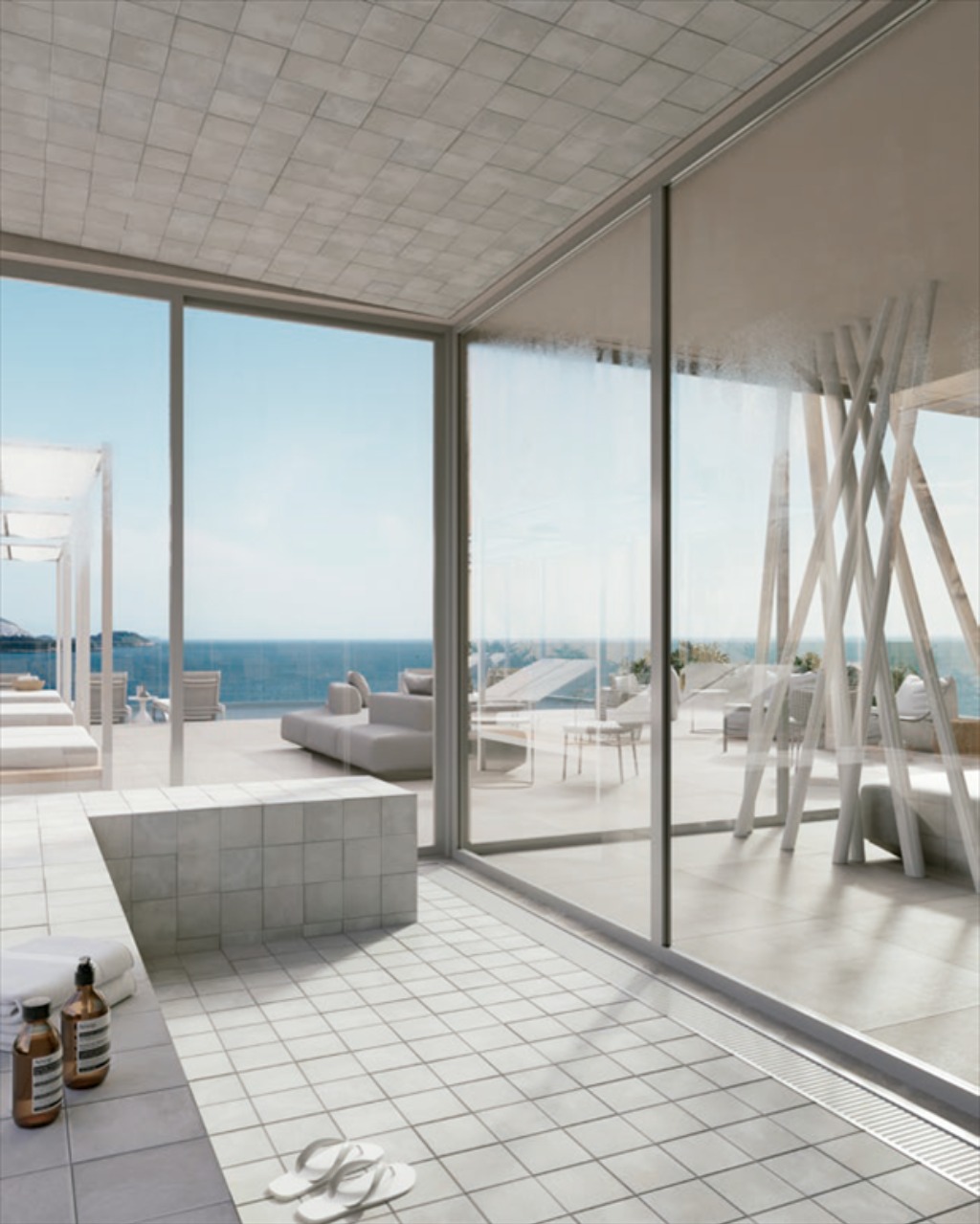 dentro de uma piscina com borda infinita.
