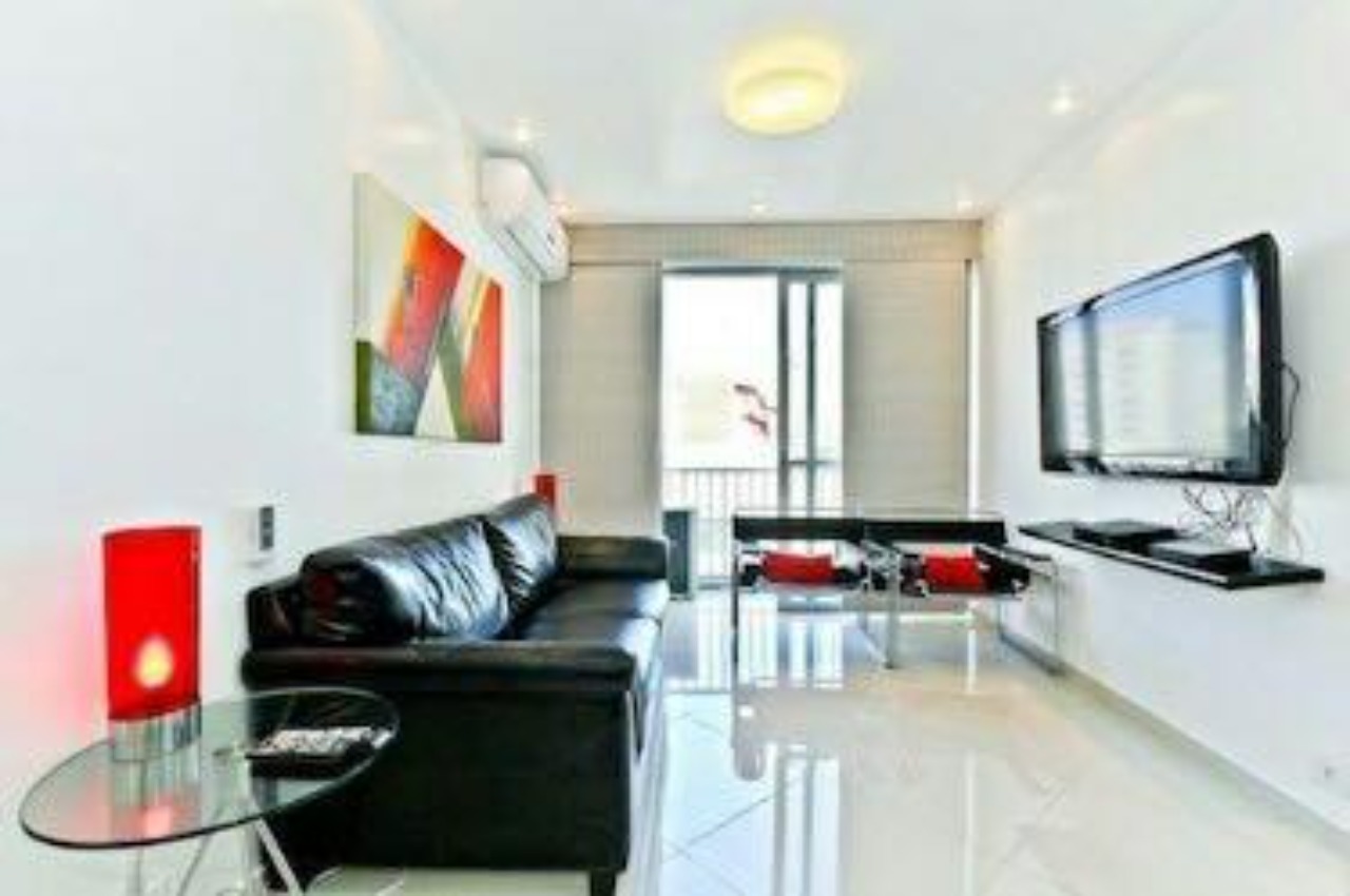 Ao entrar neste apartamento, você será recebido por um ambiente espaçoso e iluminado, perfeito para receber amigos e família. A sala é um convite para desfrutar de momentos de descontração e lazer, com espaço suficiente para acomodar confortavelmente um sofá, uma mesa de centro e uma televisão de tela plana.