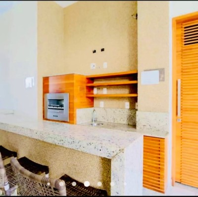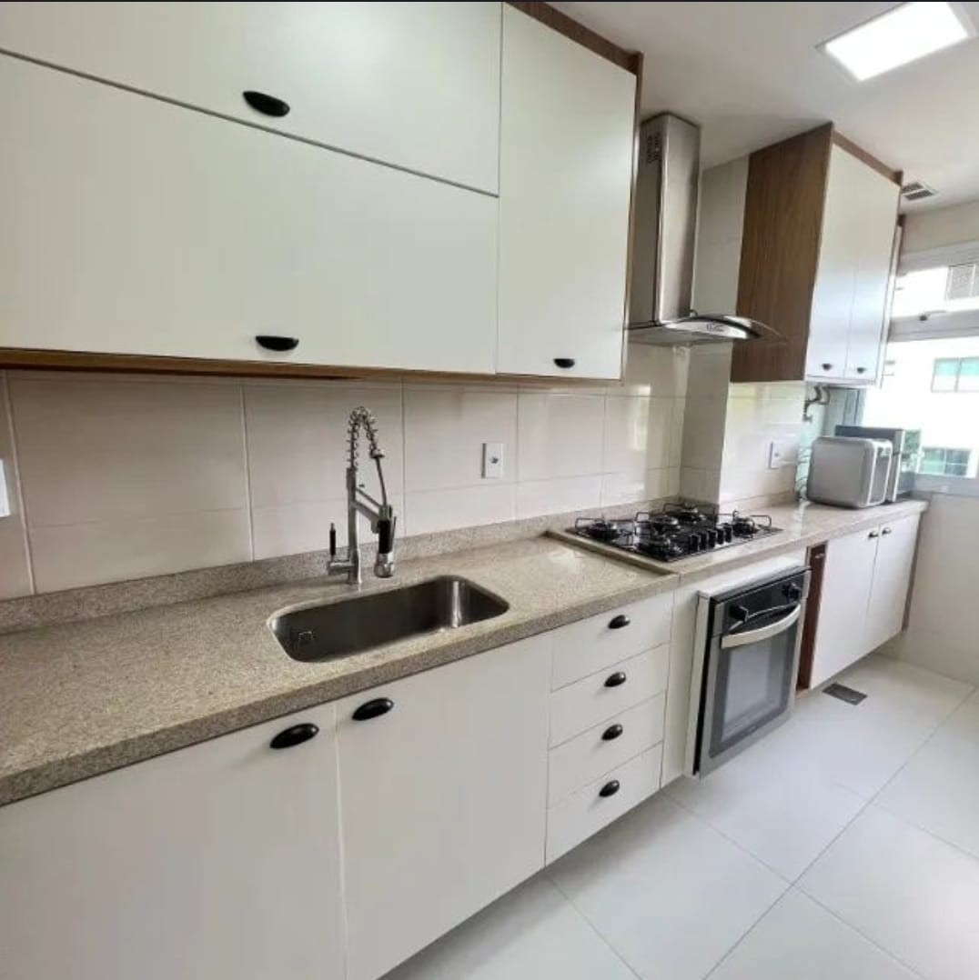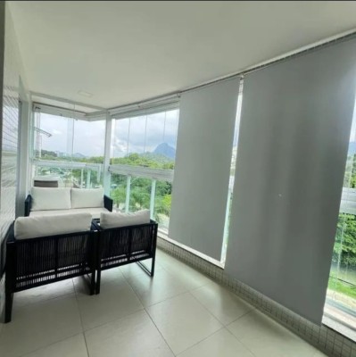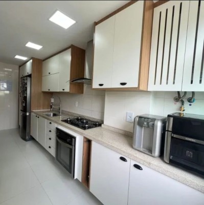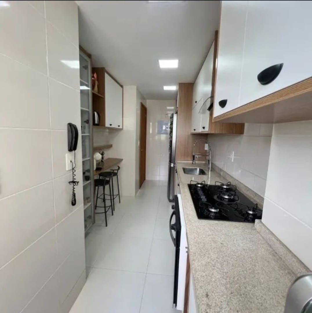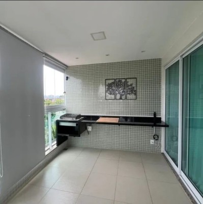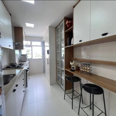 Cozinha americana moderna com espaço para refeições Varanda lindíssima com cortina de vidro e porta para climatizar o espaço Extremamente fresco e arejado durante todo o dia.