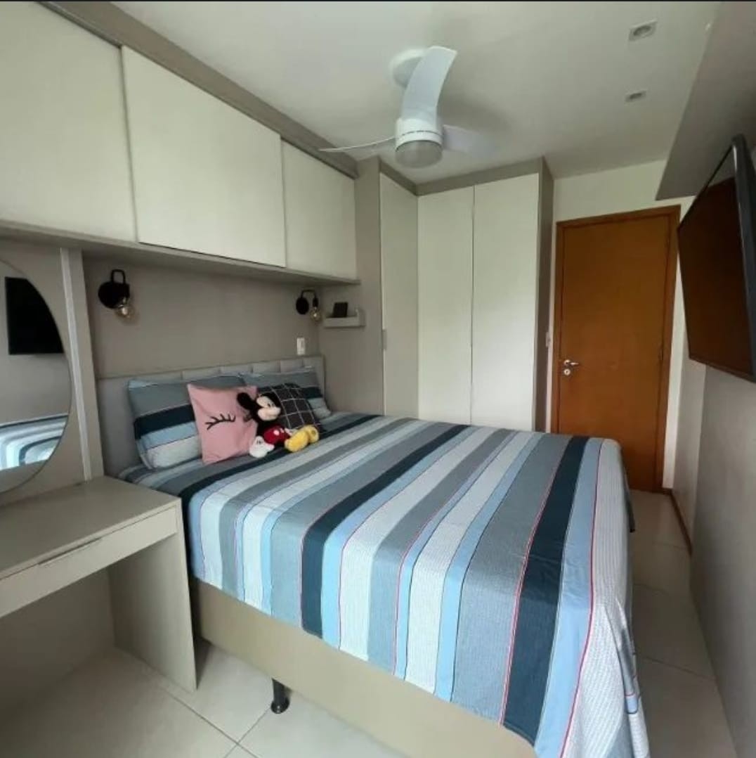 São 3 quartos, sendo 1 suíte, todos com armários planejados sob medida presentes também na sala, cozinha e banheiros.