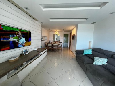 Além disso, o apartamento está semi-mobiliado e conta com acabamentos de alta qualidade, como esquadrias em alumínio, rebaixo em gesso, ar condicionado split, cozinha azulejada até o teto e varanda aberta, proporcionando um ambiente elegante e aconchegante.