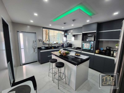 Descrição › CFA Consultoria Imobiliária venda Belíssima casa construída em centro de terreno na melhor região de Vila Valqueire, composta de 3 excelentes dormitórios climatizados, ampla cozinha com bancada central, varandão, sala em dois ambientes, três quartos, banheiro social, lavanderia, área gourmet, piscina e garagem