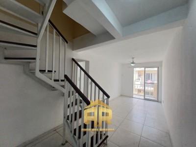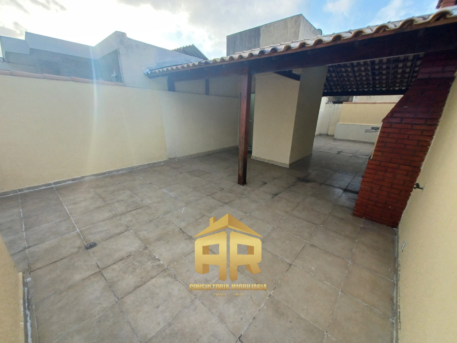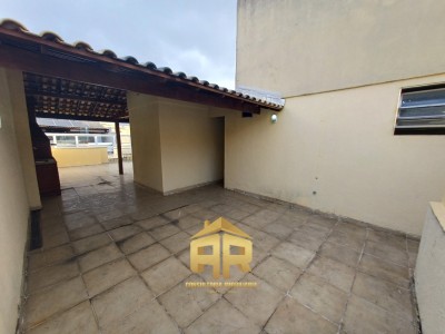 Cobertura com dois quartos sendo um suíte, sala ampla, cozinha ampla com área de serviço, banheiro social, cobertura/terraço com churrasqueira, parcialmente coberto com telhado colonial.