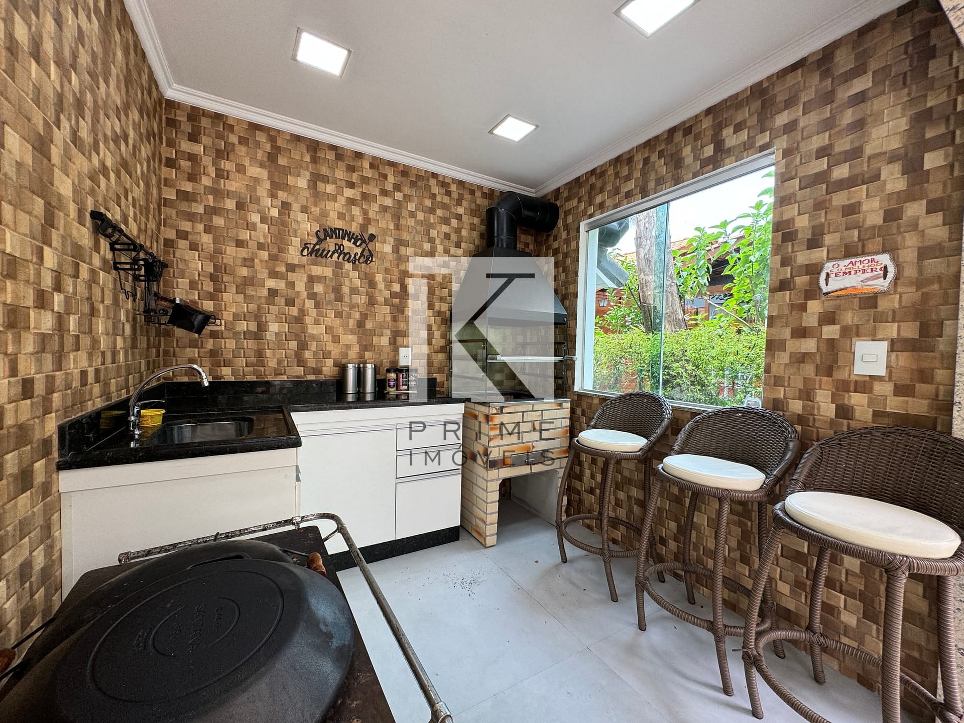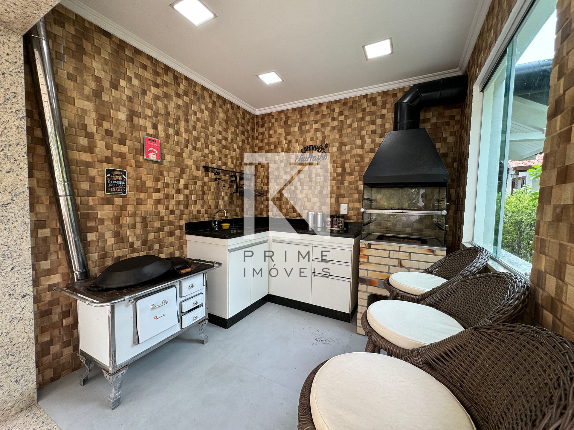Área gourmet completa com churrasqueira e banheiro social.